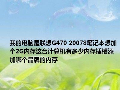导读 相信目前很多小伙伴对于我的电脑是联想G470 20078笔记本,想加一个2G内存,请问这个电脑几个内存插槽?加哪个牌子的内存?都比较感兴趣,那么...