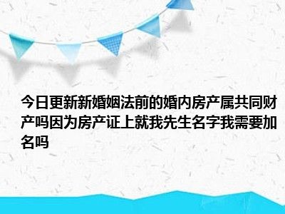 导读 目前大家应该是对新婚姻法前的婚内房产属共同财产吗因为房产证上就我先生名字,我需要加名吗比较感兴趣的,所以今天好房网小编CC就来为大家