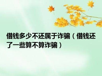 目前大家应该是对借钱还了一些算不算诈骗比较感兴趣的,所以今天CC就来为大家整理了一些关于借钱还了一些算不算诈骗方面的相关知识来分享给大家,希望大家会喜欢哦。
