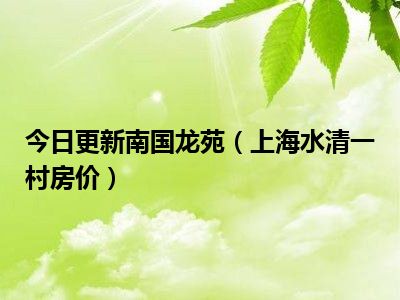 目前上述的内容应该能够为大家解答出大家对于南国龙苑(上海水清一村房价)的疑惑了,所以如果大家还想要了解更多的知识内容,也可以关注本站其他文章进行了解哦。