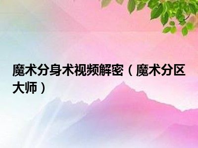 导读目前是有很多朋友们对于魔术分区大师这个信息比较感兴趣,那么小编也是收集了一些魔术分区大师相关的信息来分享给大家,希望你会喜欢哦。...