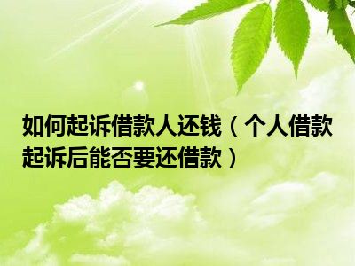 目前大家应该是对个人借款起诉后能否要还借款比较感兴趣的,所以今天CC就来为大家整理了一些关于个人借款起诉后能否要还借款方面的相关知识来分享给大家,希望大家会喜欢哦。