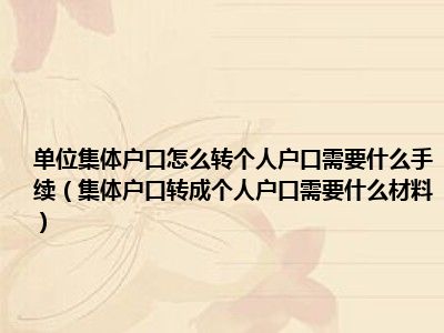 目前大家应该是对集体户口转成个人户口需要什么材料比较感兴趣的,所以今天CC就来为大家整理了一些关于集体户口转成个人户口需要什么材料方面的相关知识来分享给大家,希望大家会喜欢哦。