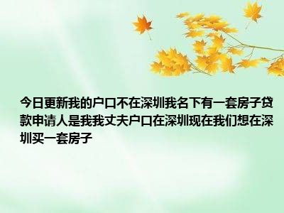 导读 目前大家应该是对我的户口不在深圳,我名下有一套房子,贷款申请人是我我丈夫户口在深圳,现在我们想在深圳买一套房子比较感兴趣的,所以今