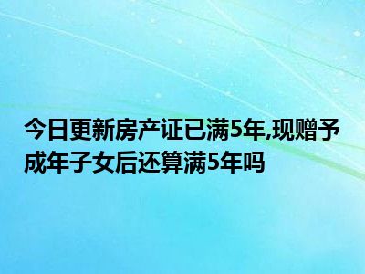 导读 目前大家应该是对房产证已满5年,现赠予成年子女后还算满5年吗比较感兴趣的,所以今天好房网小编CC就来为大家整理了一些关于房产证已满5年,