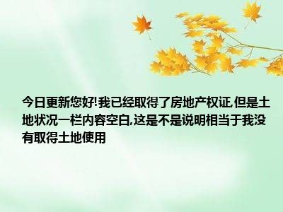 导读 目前大家应该是对您好!我已经取得了房地产权证,但是土地状况一栏内容空白,这是不是说明相当于我没有取得土地使用比较感兴趣的,所以今天好