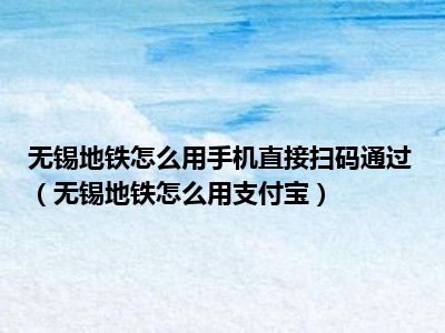 1、 无锡地铁怎么用支付宝