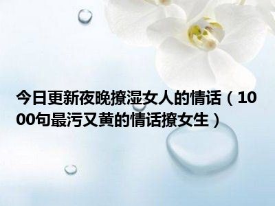 目前上述的内容应该能够为大家解答出大家对于夜晚撩湿女人的情话(1000句最污又黄的情话撩女生)的疑惑了,所以如果大家还想要了解更多的知识内容,也可以关注本站其他文章进行了解哦。
