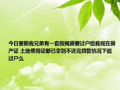 导读 目前大家应该是对我兄弟有一套按揭房要过户给我,现在房产证 土地使用证都已拿到,不还完贷款情况下能过户么比较感兴趣的,所以今天好房网