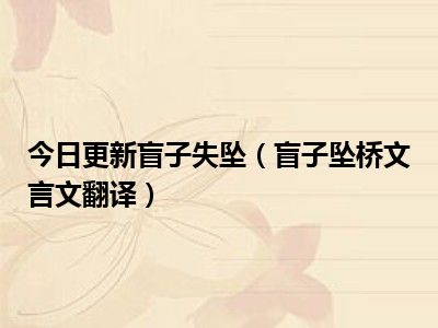 目前上述的内容应该能够为大家解答出大家对于盲子失坠(盲子坠桥文言文翻译)的疑惑了,所以如果大家还想要了解更多的知识内容,也可以关注本站其他文章进行了解哦。