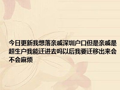 导读 目前大家应该是对我想落亲戚深圳户口,但是亲戚是超生户,我能迁进去吗以后我要迁移出来会不会麻烦比较感兴趣的,所以今天好房网小编CC就来
