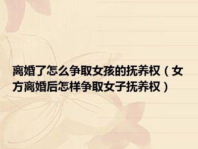 目前大家应该是对女方离婚后怎样争取女子抚养权比较感兴趣的,所以今天CC就来为大家整理了一些关于女方离婚后怎样争取女子抚养权方面的相关知识来分享给大家,希望大家会喜欢哦。