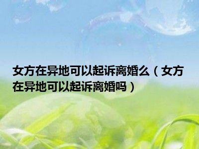 女方在异地可以起诉离婚,但要去男方住所地的法院起诉;如果男方住所地与经常居住地不一致的,要去其经常居住地的法院起诉;如果没有经常居住地的,则到女方起诉时男方居住地人民法院起诉。