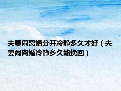 目前大家应该是对夫妻闹离婚冷静多久能挽回比较感兴趣的,所以今天CC就来为大家整理了一些关于夫妻闹离婚冷静多久能挽回方面的相关知识来分享给大家,希望大家会喜欢哦。