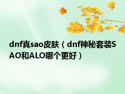 相信目前很多小伙伴对于dnf神秘套装SAO和ALO哪个更好都比较感兴趣,那么小编今天在网上也是收集了一些与dnf神秘套装SAO和ALO哪个更好相关的信息来分享给大家,希望能够帮助到大家哦。