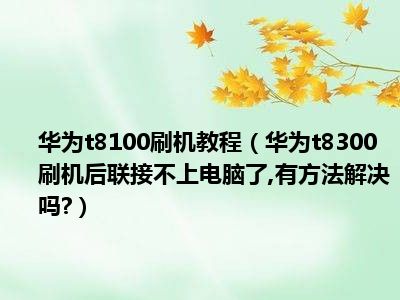 相信目前很多小伙伴对于华为t8300刷机后联接不上电脑了,有方法解决吗?都比较感兴趣,那么小编今天在网上也是收集了一些与华为t8300刷机后联接不上电脑了,有方法解决吗?相关的信息来分享给大家,希望能够帮助到大家哦。