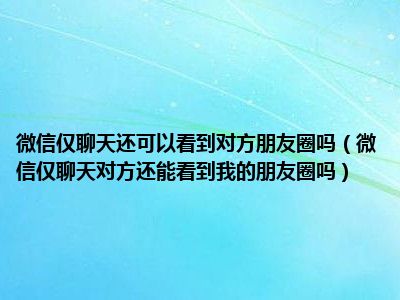 导读 1、微信仅聊天对方还能看到我的朋友圈吗2、不能。在微信上设置好友只能聊天后,对方看不到你的朋友圈。3、当对方进入你的朋友圈,他将无法