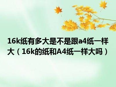 相信目前很多小伙伴对于16k的纸和A4纸一样大吗都比较感兴趣,那么小编今天在网上也是收集了一些与16k的纸和A4纸一样大吗相关的信息来分享给大家,希望能够帮助到大家哦。