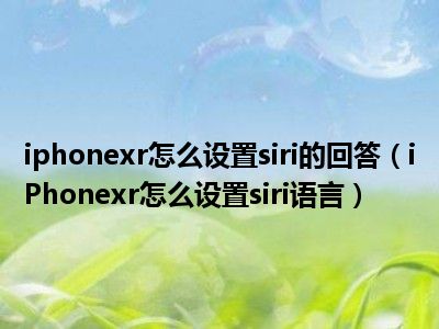 1、 iPhonexr怎么设置siri语言