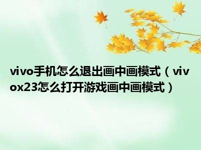 1、 vivox23怎么打开游戏画中画模式