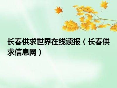 导读目前是有很多朋友们对于长春供求信息网这个信息比较感兴趣,那么小编也是收集了一些长春供求信息网相关的信息来分享给大家,希望你会喜欢哦...