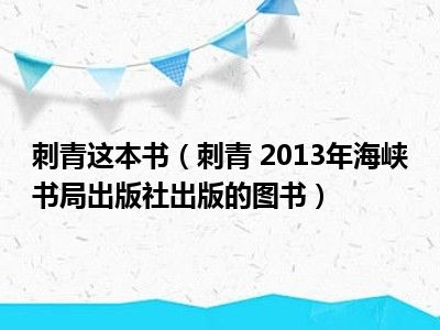导读 目前是有很多朋友们对于刺青 2013年海峡书局出版社出版的图书这个信息比较感兴趣,那么小编也是收集了一些刺青 2013年海峡书局出版社出版...