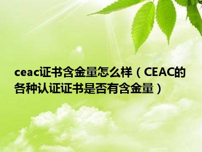 目前应该是有很多小伙伴对于CEAC的各种认证证书是否有含金量方面的信息比较感兴趣,现在小编就收集了一些与CEAC的各种认证证书是否有含金量相关的信息来分享给大家,感兴趣的小伙伴可以接着往下看,希望会帮助到你哦。