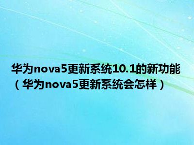 导读 1、华为nova5更新系统会怎样2、以EMUI10 1 0 162系统为例,华为nova5更新系统将提升手机性能,增强对个人隐私和数据安全的保护,提供更多新