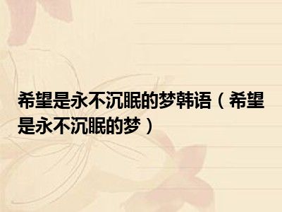 导读目前是有很多朋友们对于希望是永不沉眠的梦这个信息比较感兴趣,那么小编也是收集了一些希望是永不沉眠的梦相关的信息来分享给大家,希望你...