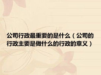 目前应该是有很多小伙伴对于公司的行政主要是做什么的行政的意义方面的信息比较感兴趣,现在小编就收集了一些与公司的行政主要是做什么的行政的意义相关的信息来分享给大家,感兴趣的小伙伴可以接着往下看,希望会帮助到你哦。