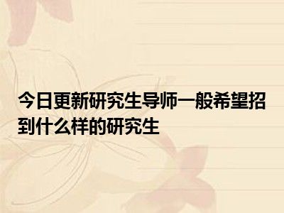 目前大家应该是对研究生导师一般希望招到什么样的研究生比较感兴趣的,所以今天好房网小编CC就来为大家整理了一些关于研究生导师一般希望招到什么样的研究生方面的相关知识来分享给大家,希望大家会喜欢哦。