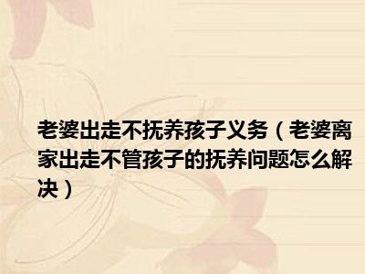 目前大家应该是对老婆离家出走不管孩子的抚养问题怎么解决比较感兴趣的,所以今天CC就来为大家整理了一些关于老婆离家出走不管孩子的抚养问题怎么解决方面的相关知识来分享给大家,希望大家会喜欢哦。