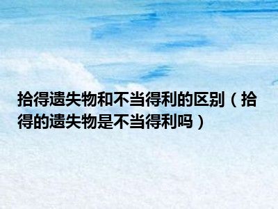 目前大家应该是对拾得的遗失物是不当得利吗比较感兴趣的,所以今天CC就来为大家整理了一些关于拾得的遗失物是不当得利吗方面的相关知识来分享给大家,希望大家会喜欢哦。
