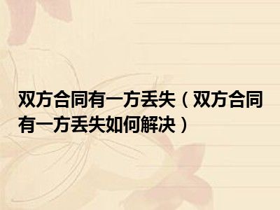 目前大家应该是对双方合同有一方丢失如何解决比较感兴趣的,所以今天CC就来为大家整理了一些关于双方合同有一方丢失如何解决方面的相关知识来分享给大家,希望大家会喜欢哦。