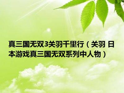 导读 目前是有很多朋友们对于关羽 日本游戏真·三国无双系列中人物这个信息比较感兴趣,那么小编也是收集了一些关羽 日本游戏真·三国无双系列...