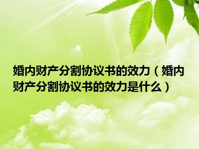 目前大家应该是对婚内财产分割协议书的效力是什么比较感兴趣的,所以今天CC就来为大家整理了一些关于婚内财产分割协议书的效力是什么方面的相关知识来分享给大家,希望大家会喜欢哦。