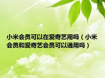 导读 1、小米会员和爱奇艺会员可以通用吗?2、小米会员和爱奇艺会员不能通用。爱奇艺的星钻VIP是顶级会员,可以看电视、玩VIP、看动漫、体育等资