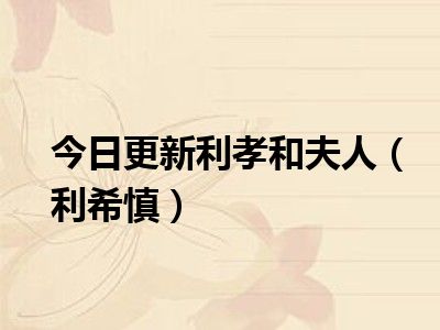 目前上述的内容应该能够为大家解答出大家对于利孝和夫人(利希慎)的疑惑了,所以如果大家还想要了解更多的知识内容,也可以关注本站其他文章进行了解哦。