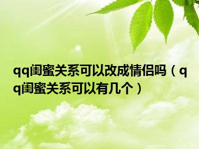 导读 1、qq闺蜜关系可以有几个?2、qq没有女朋友数量限制。只需要在QQ亲密关系中邀请好友,然后在好友同意的情况下就可以建立女朋友关系。3、绑