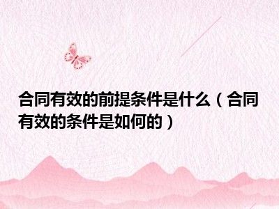 目前大家应该是对合同有效的条件是如何的比较感兴趣的,所以今天CC就来为大家整理了一些关于合同有效的条件是如何的方面的相关知识来分享给大家,希望大家会喜欢哦。