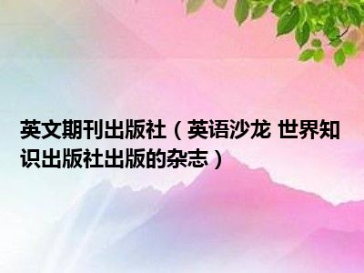 1、《英语沙龙》是由世界知识出版社出版的杂志名称,以中英双语对照的出版物为特色,自1994年创刊。