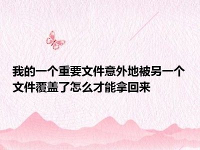 相信目前很多小伙伴对于我的一个很重要的文件被另一个文件不小心覆盖了,我应当怎样才能找回来?都比较感兴趣,那么小编今天在网上也是收集了一些与我的一个很重要的文件被另一个文件不小心覆盖了,我应当怎样才能找回来?相关的信息来分享给大家,希望能够帮助到大家哦。