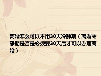目前大家应该是对离婚冷静期是否是必须要30天后才可以办理离婚比较感兴趣的,所以今天CC就来为大家整理了一些关于离婚冷静期是否是必须要30天后才可以办理离婚方面的相关知识来分享给大家,希望大家会喜欢哦。