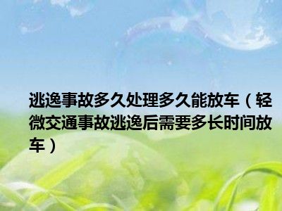目前大家应该是对轻微交通事故逃逸后需要多长时间放车比较感兴趣的,所以今天CC就来为大家整理了一些关于轻微交通事故逃逸后需要多长时间放车方面的相关知识来分享给大家,希望大家会喜欢哦。