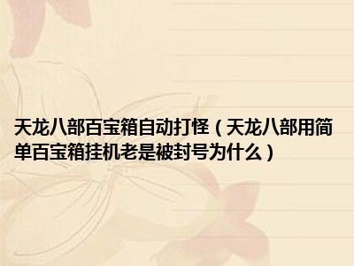 相信目前很多小伙伴对于天龙八部用简单百宝箱挂机老是被封号为什么都比较感兴趣,那么小编今天在网上也是收集了一些与天龙八部用简单百宝箱挂机老是被封号为什么相关的信息来分享给大家,希望能够帮助到大家哦。