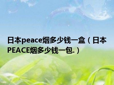 目前应该是有很多小伙伴对于日本PEACE烟多少钱一包.方面的信息比较感兴趣,现在小编就收集了一些与日本PEACE烟多少钱一包.相关的信息来分享给大家,感兴趣的小伙伴可以接着往下看,希望会帮助到你哦。