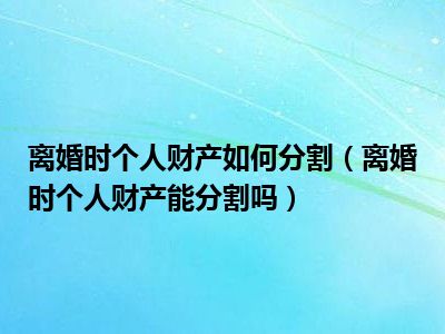 目前大家应该是对离婚时个人财产能分割吗比较感兴趣的,所以今天CC就来为大家整理了一些关于离婚时个人财产能分割吗方面的相关知识来分享给大家,希望大家会喜欢哦。