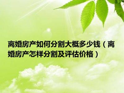 目前大家应该是对离婚房产怎样分割及评估价格比较感兴趣的,所以今天CC就来为大家整理了一些关于离婚房产怎样分割及评估价格方面的相关知识来分享给大家,希望大家会喜欢哦。