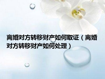 目前大家应该是对离婚对方转移财产如何处理比较感兴趣的,所以今天CC就来为大家整理了一些关于离婚对方转移财产如何处理方面的相关知识来分享给大家,希望大家会喜欢哦。