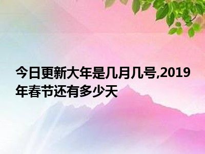 目前大家应该是对大年是几月几号,2019年春节还有多少天比较感兴趣的,所以今天小编CC就来为大家整理了一些关于大年是几月几号,2019年春节还有多少天方面的相关知识来分享给大家,希望大家会喜欢哦。